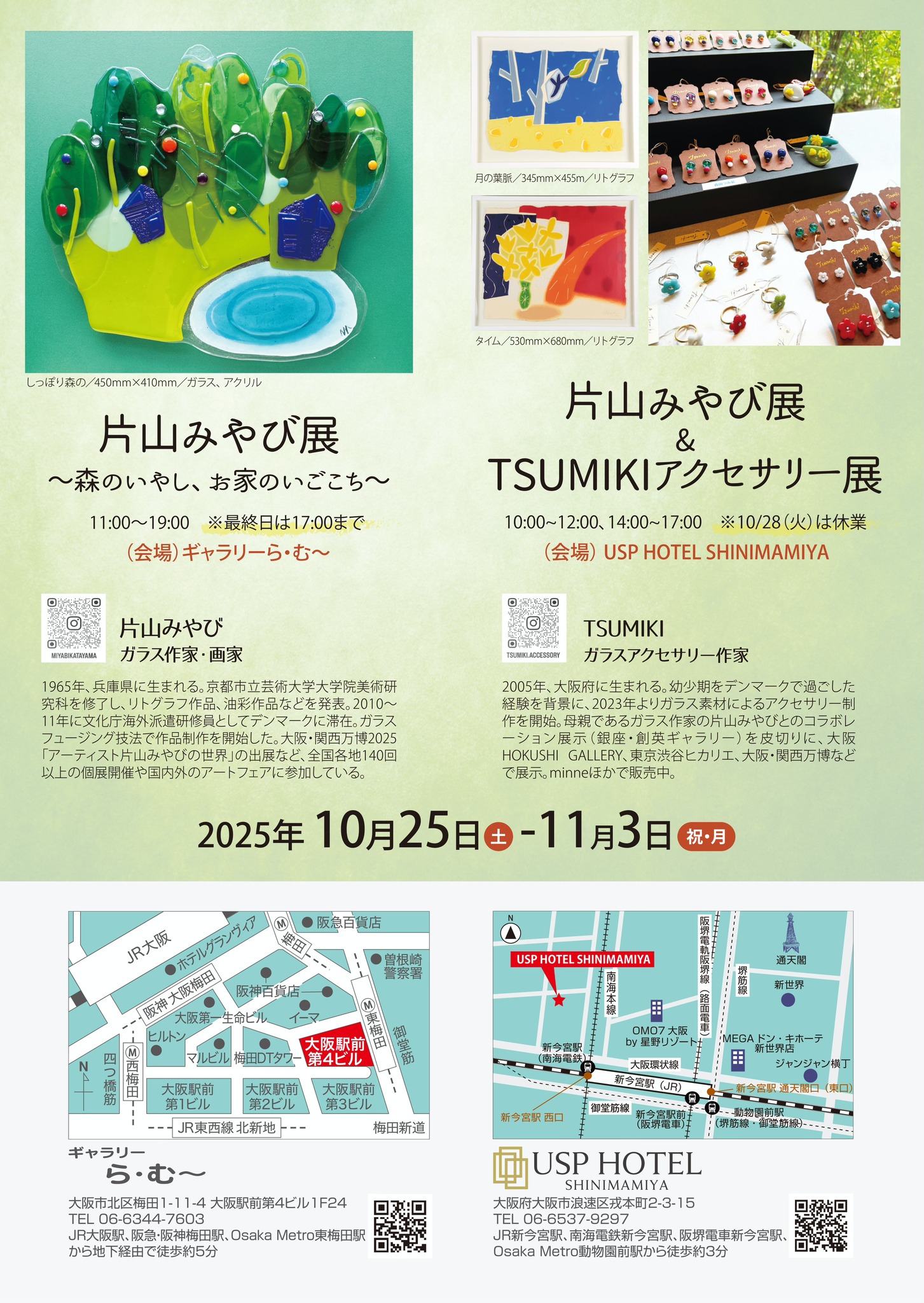 平日は午後2時以降、土日祝は午前中から私が在廊予定です。●USP HOTEL 「片山みやび展&TSUMIKIアクセサリー展」